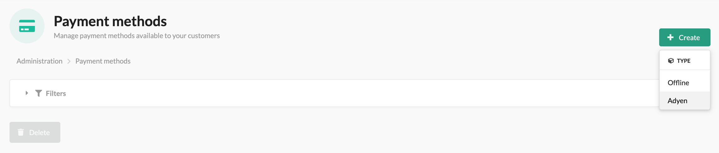 2. Click Create → Adyen.