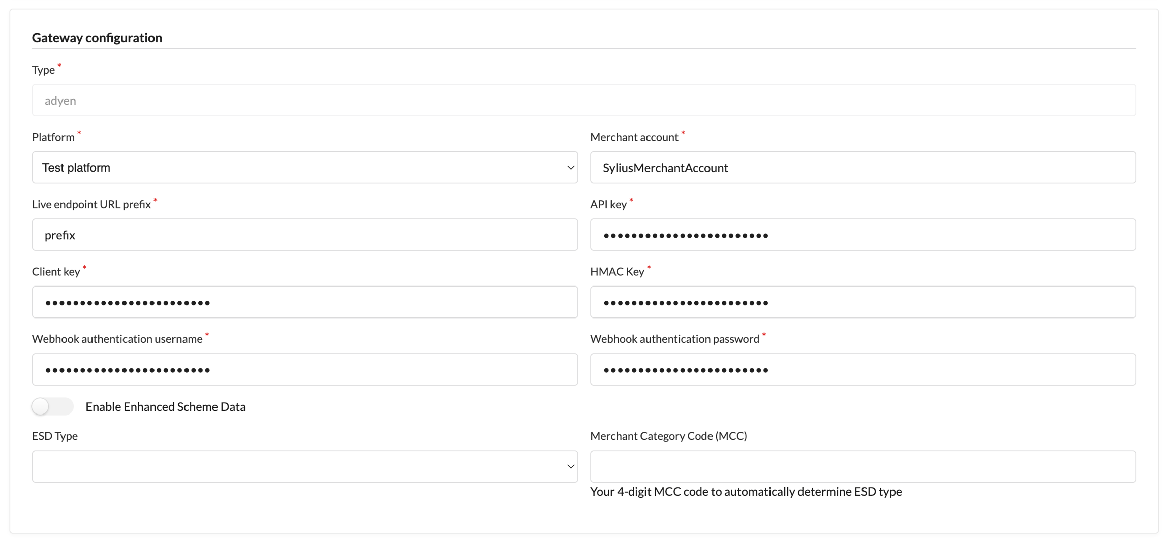 4. Fill in all required fields in the Gateway configuration.