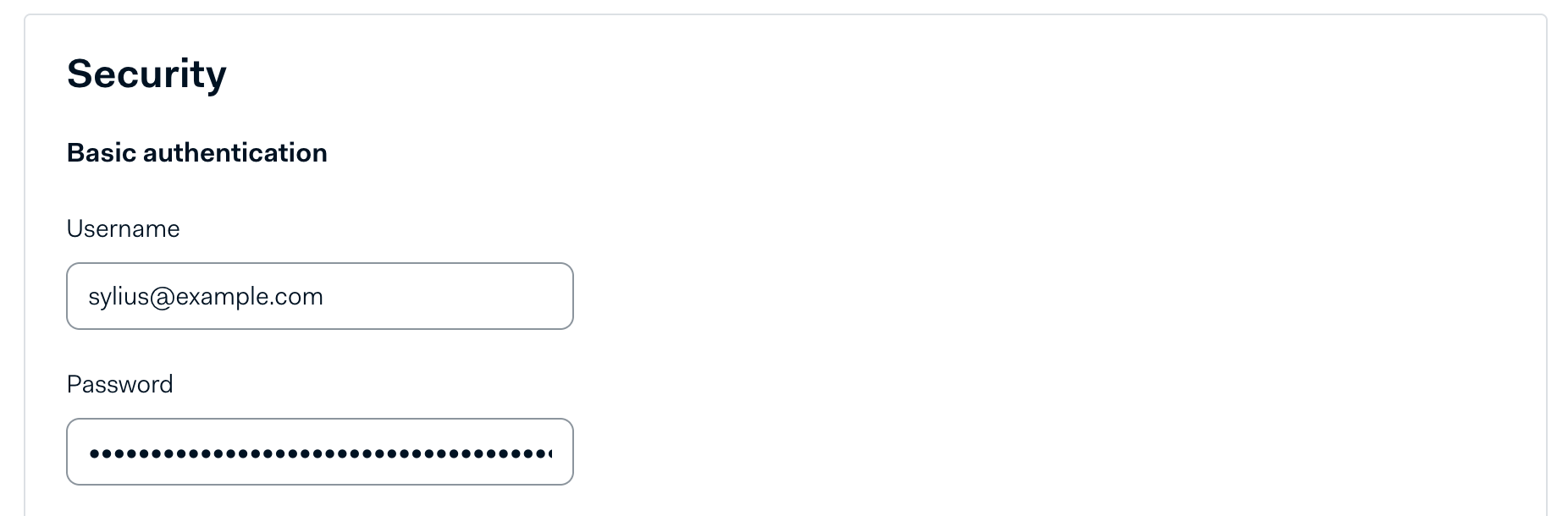 6. In the Security section, create a username and a secure password. Store them, as you will need them later in Sylius.