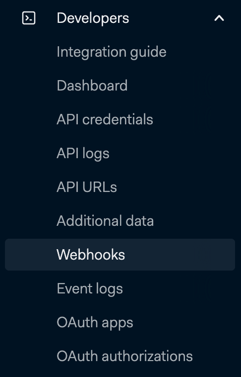 1. Go to Developers → Webhooks.