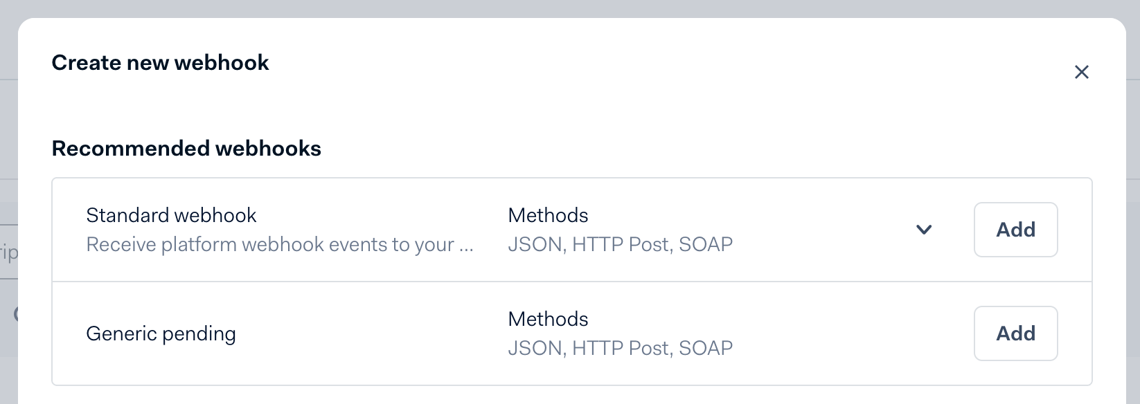 3. Select Standard webhook and click Add.