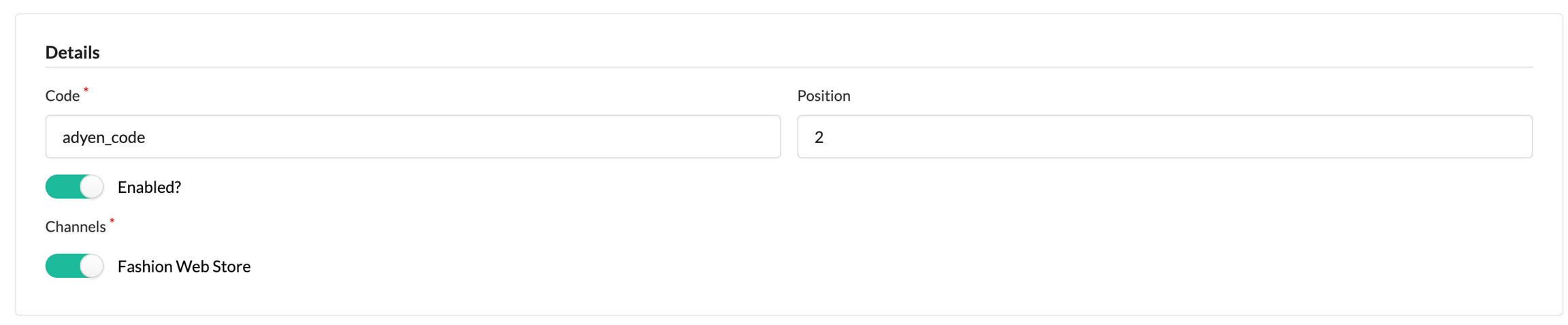 4. Decide on a code for the new Adyen payment method in the Sylius Admin panel (e.g. adyen_code).
