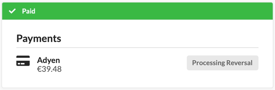 In the admin's panel, cancelling or refunding an order triggers a payment reversal.