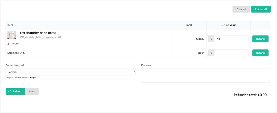 Provide partial amount of the item to be refunded and click "Refund" at the bottom of the page