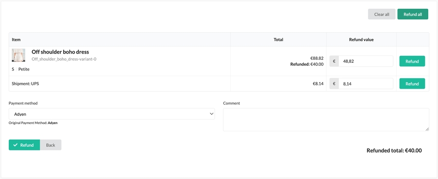 In the manual mode, partial refunds are possible as opposed to only full refunds in automatic mode. The SyliusRefundPlugin handles internal refunding logic.