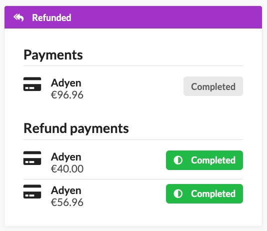 Once the request has been processed and Adyen dispatches the REFUND webhook event, the refund payment transitions to completed