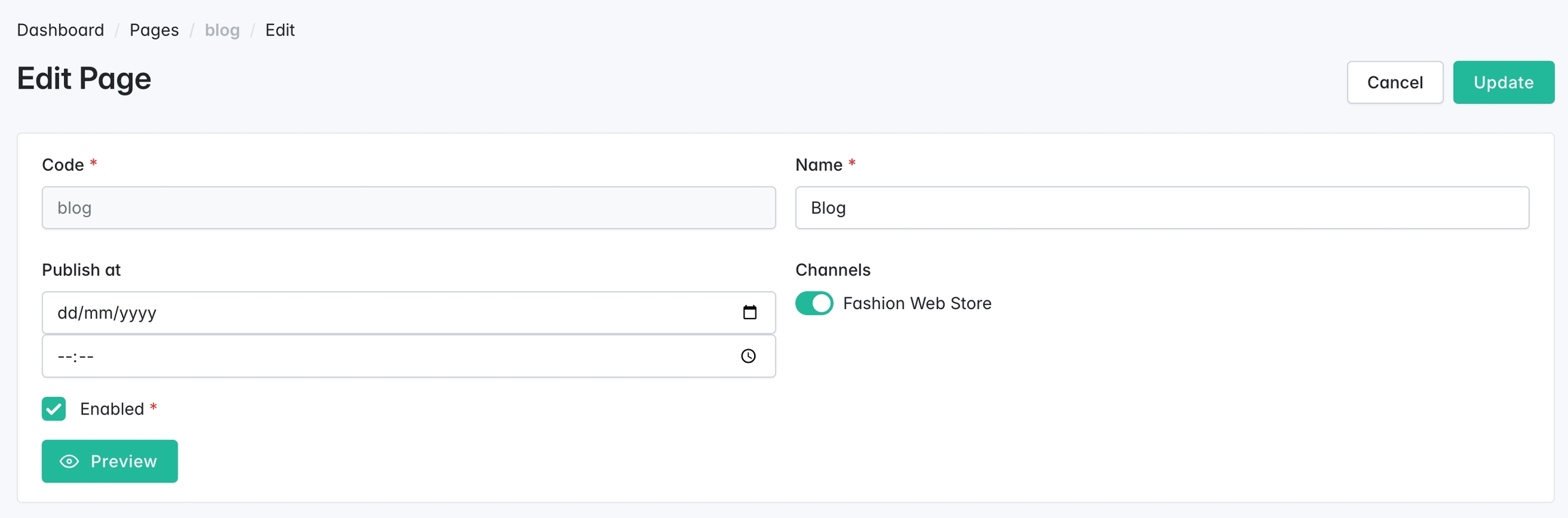 Pages are full-featured CMS-driven web pages that you can create and manage directly from the Sylius Admin Panel. They’re ideal for building landing pages, blog posts, static content (like FAQs or About pages), and more—without writing code.